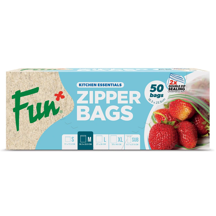 Medium-sized 18.3×23.5cm clear bags for versatile use. Leak-proof and airtight closure keeps food fresh and items protected. Ideal for food storage, organizing accessories, travel essentials, and household items.